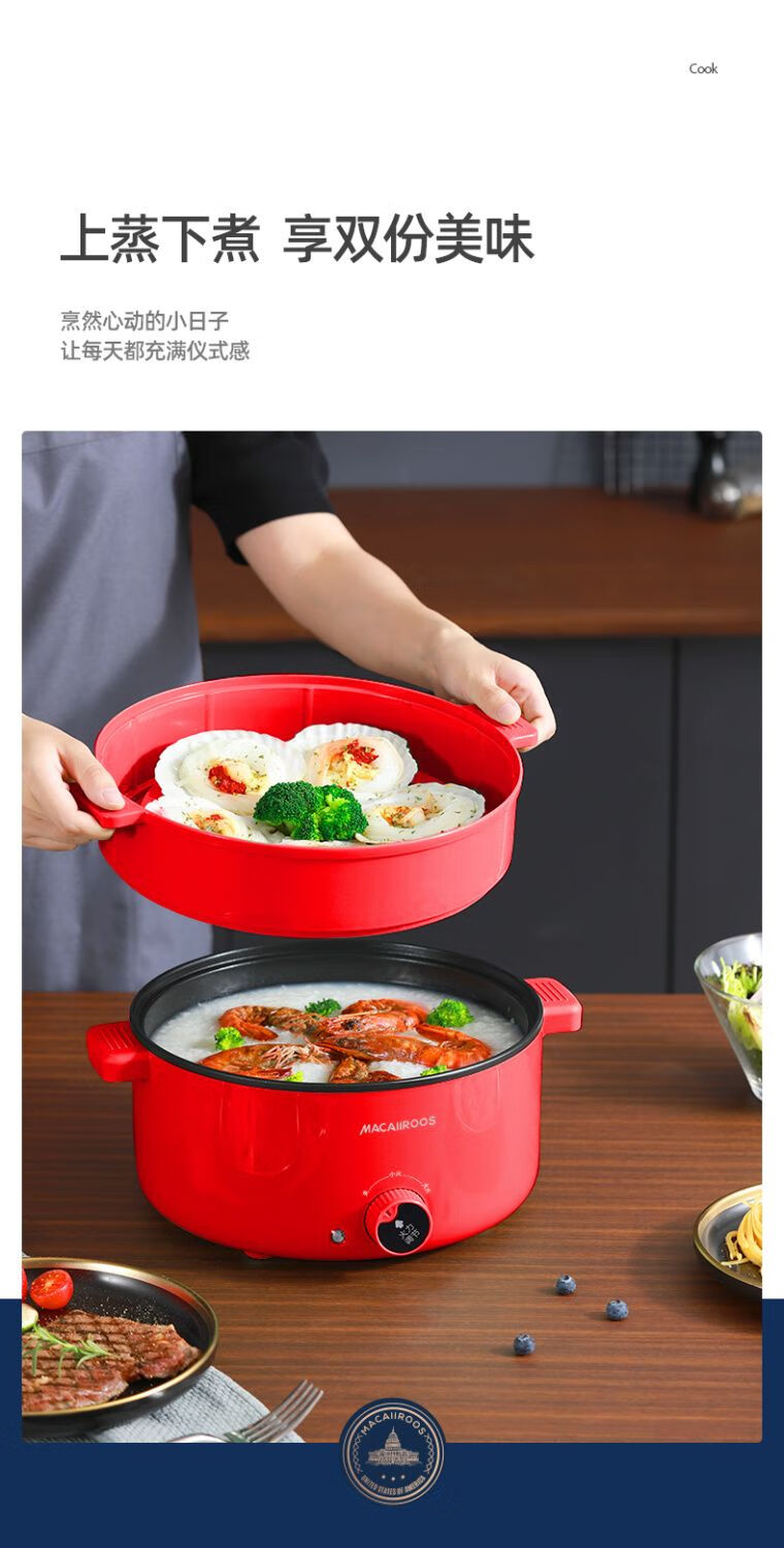 迈卡罗电煮锅火锅家用多功能电锅 MC-HG332(带蒸笼)
