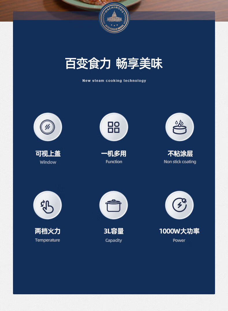 商品名称:迈卡罗电煮锅火锅家用多功能电锅 MC-HG332(带蒸笼)