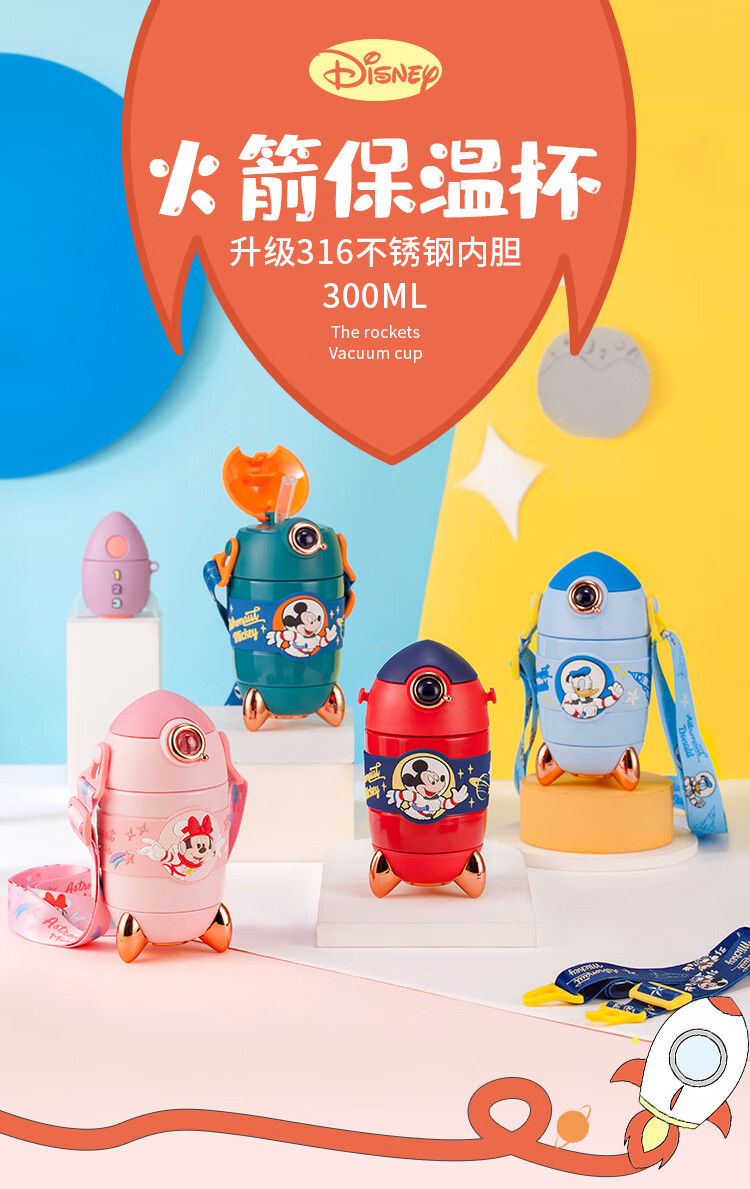 商品名称:迪士尼儿童水杯 宝宝便携火箭真空保温吸管杯 米妮300ML