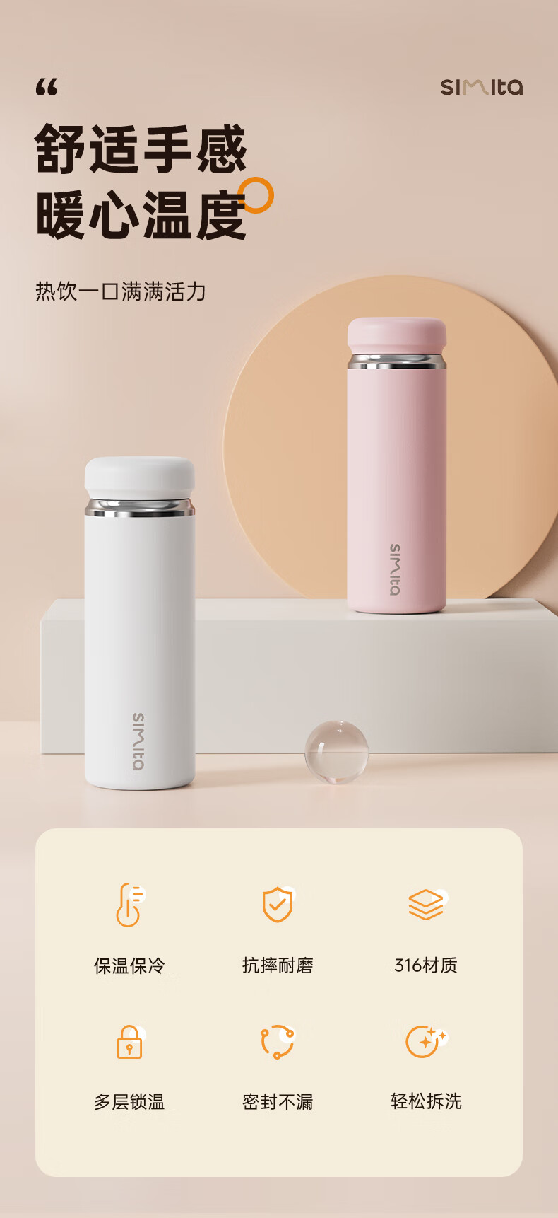 施密特(simita) 保温杯 男女士学生水杯 316不锈钢泡茶杯