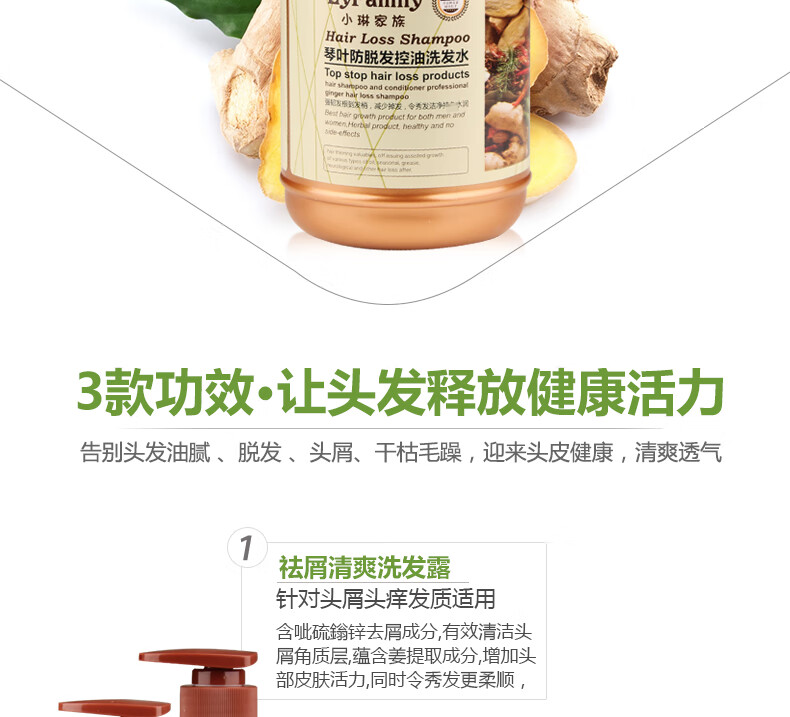 商品名称:琴叶小琳家族野生姜洗发水去屑保湿滋润 生姜去屑清爽洗发露1L
