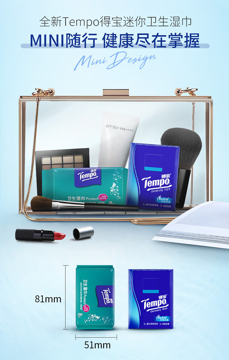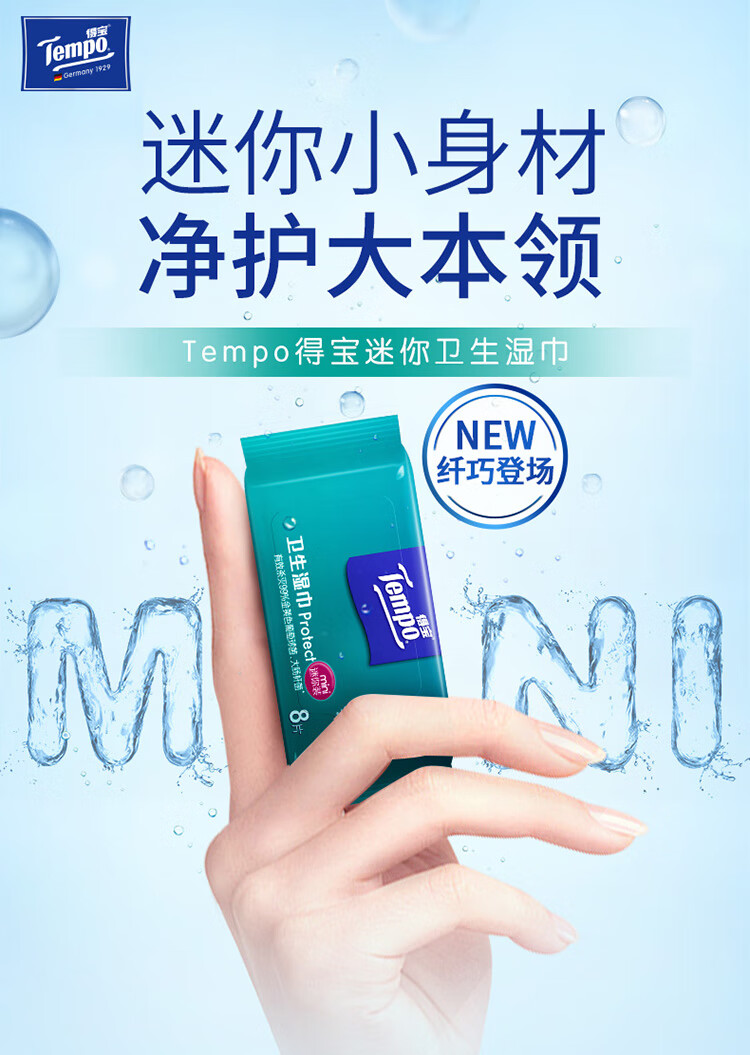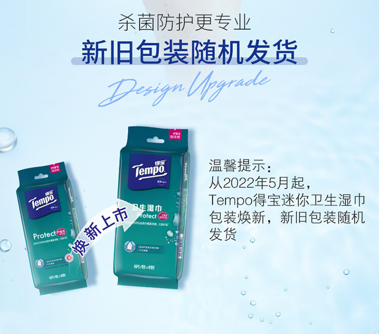 商品名称:得宝(TEMPO)湿巾 8片*6包 迷你杀菌 便携装 温和不刺激 湿纸巾 湿巾小包