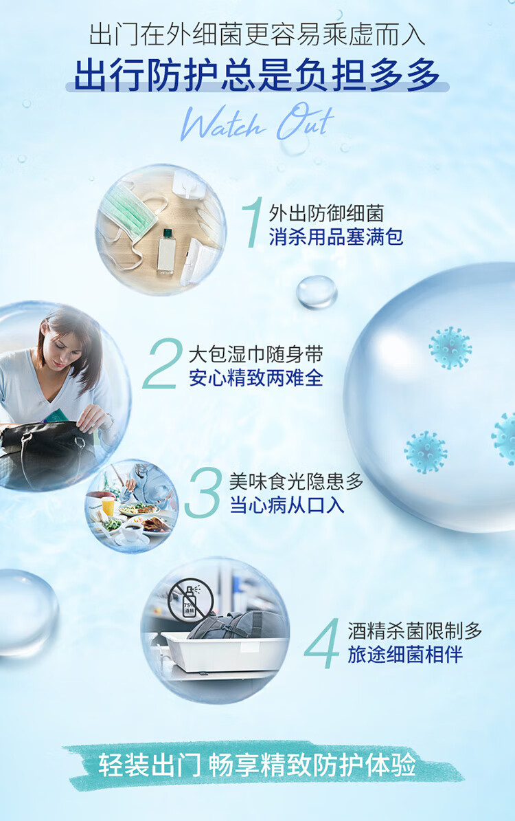 得宝(TEMPO)湿巾 8片*6包 迷你杀菌 便携装 温和不刺激 湿纸巾 湿巾小包