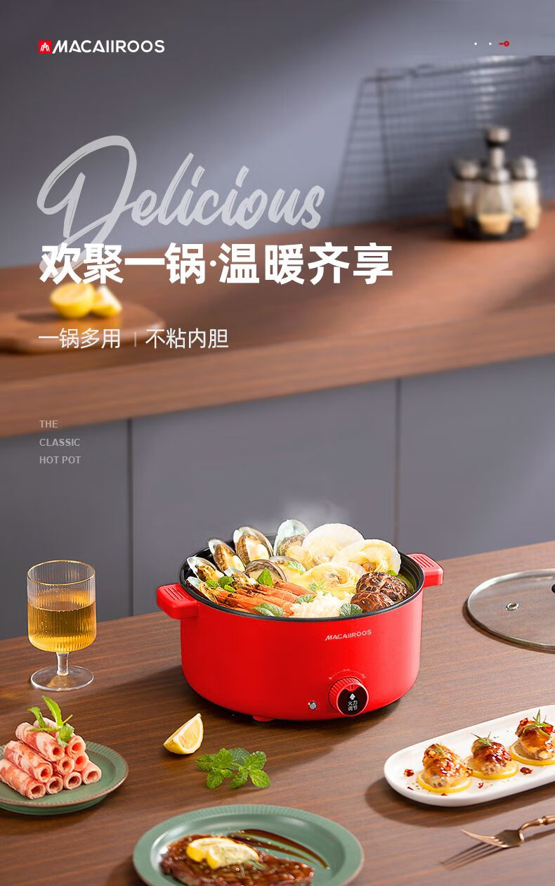 迈卡罗电煮锅火锅家用多功能电锅 MC-HG332(带蒸笼) MC-HG339(红色不带蒸笼)