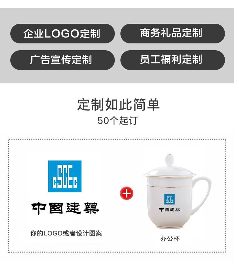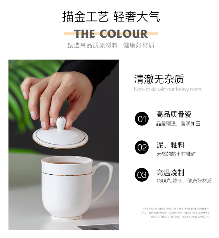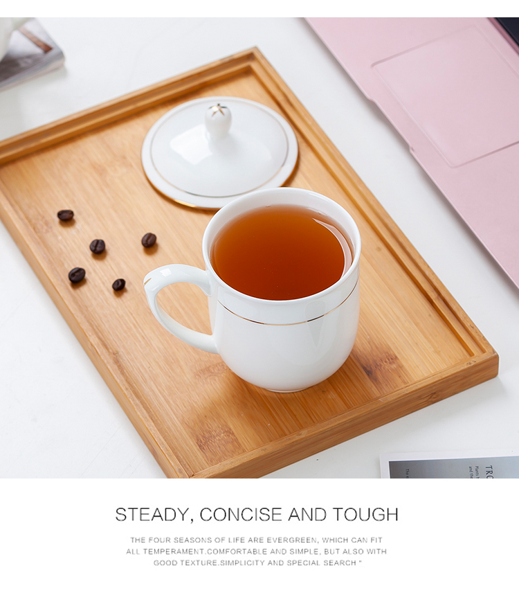 商品名称:茶杯 陶瓷盖杯中号骨瓷水杯金边会议杯办公杯酒店商务喝茶开会杯子360ml