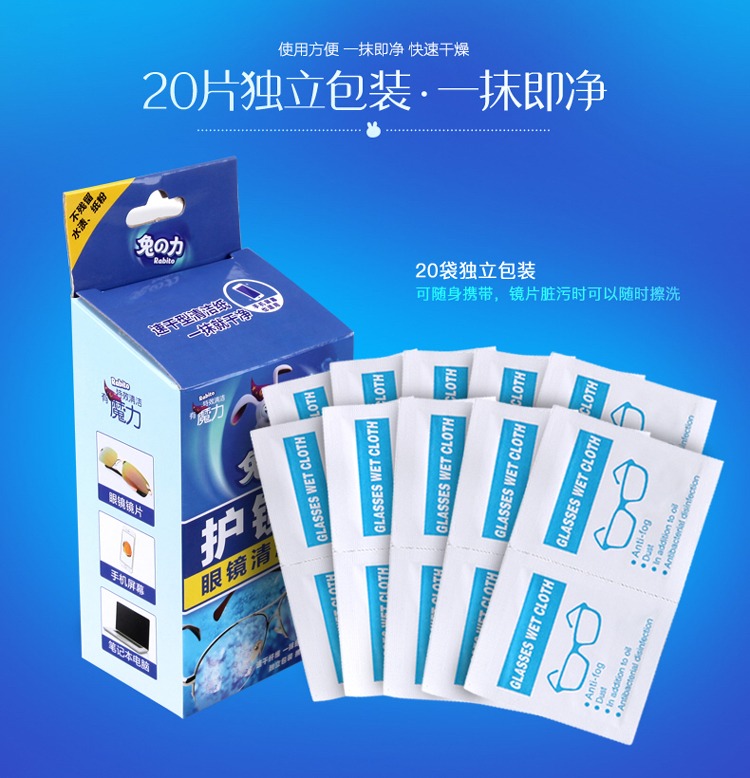 商品名称:兔之力眼镜湿巾20片/盒现货