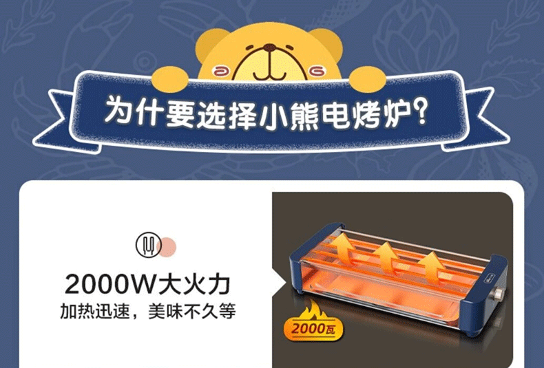小熊(Bear)烧烤炉 电烧烤炉 烧烤架 烤肉机烤串机家用电烤炉烧烤 单层大容量不粘无烟大功率